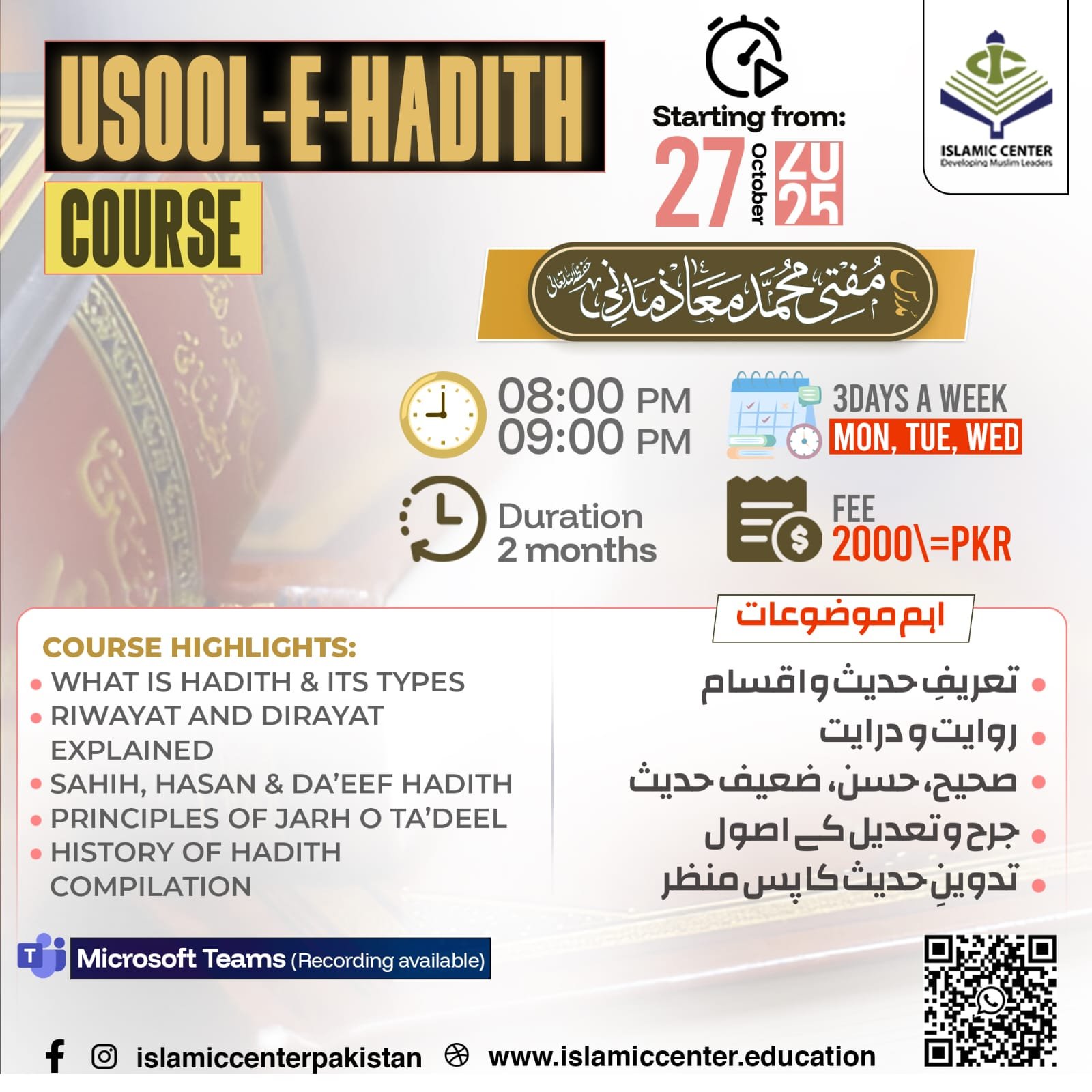 Mufti Maaz Ahmed Siddiqui is a distinguished Islamic scholar, jurist, educator, and spiritual mentor known for his exceptional academic excellence, deep command of classical Islamic sciences, and remarkable ability to address contemporary challenges with wisdom and clarity. With an extensive background in Islamic Studies—spanning advanced degrees such as an M.Phil with a top-tier CGPA, ongoing Ph.D. research, and a formal specialization in Islamic jurisprudence (Takhasus fil Fiqh)—he represents a unique blend of traditional scholarship and modern academic insight.